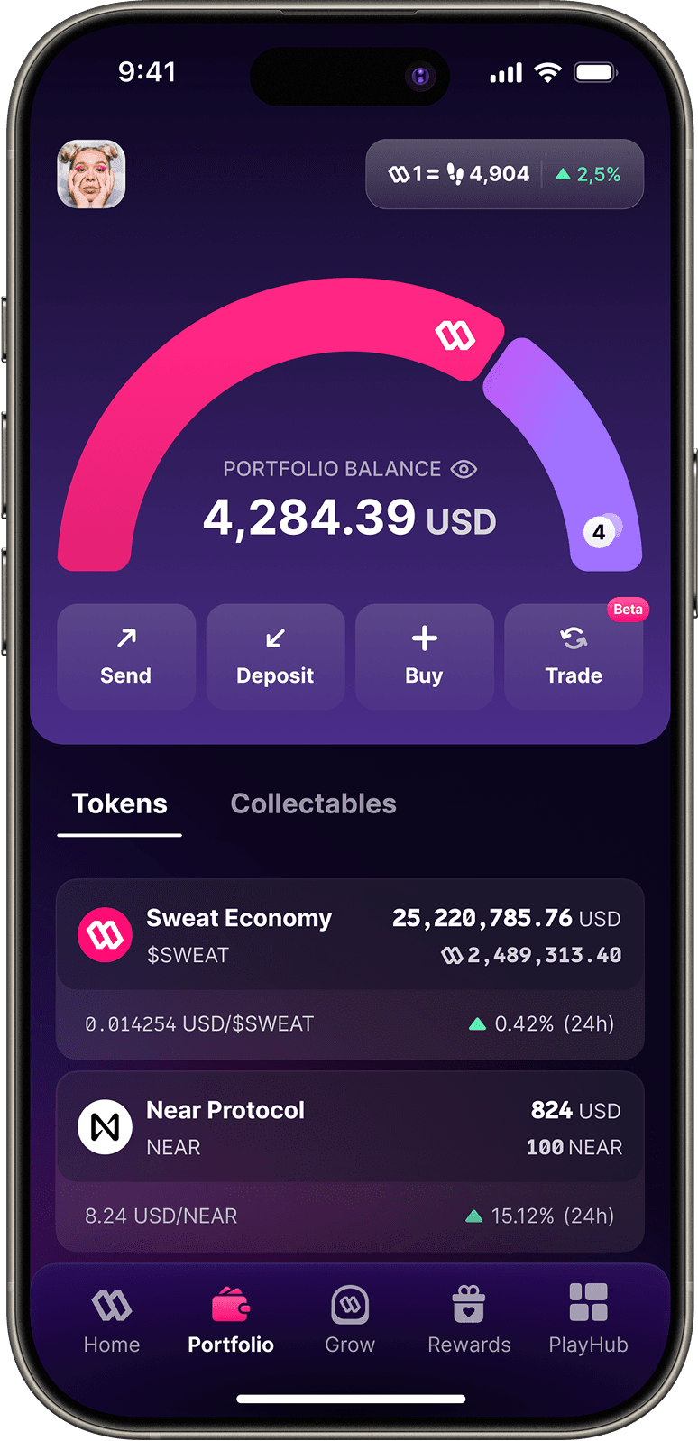 Manage your $SWEAT and crypto holdings in one seamless, multichain portfolio.